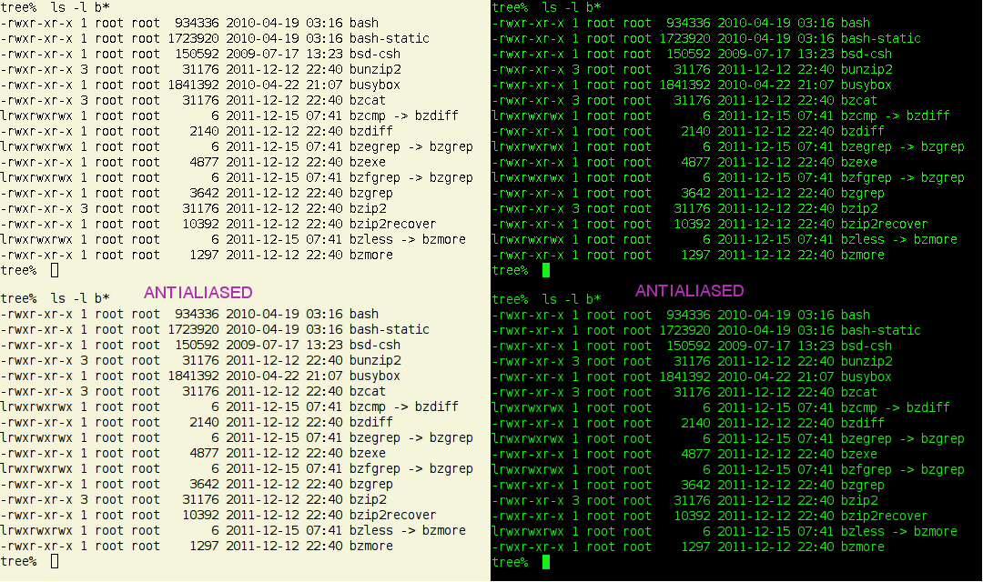 monochrome and antialiased glyphs, as it affects the apparent